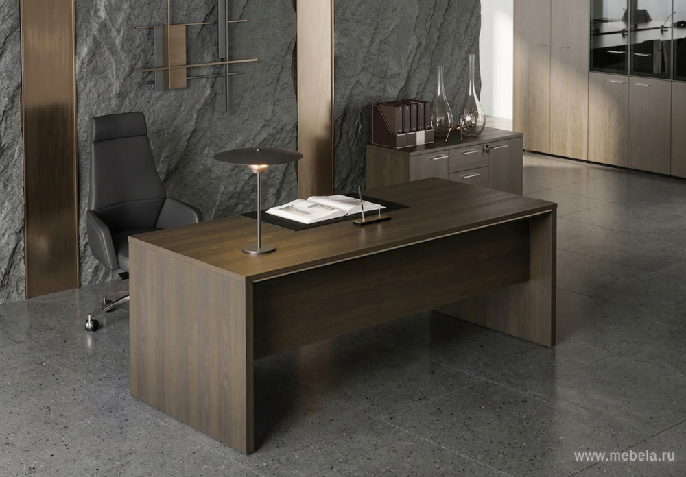 Лаконичный комплект мебели Квинс (Kvins) отлично подойдет для интерьера, выполненного в стиле современного минимализма. Строгие линии утонченной столешницы в сочетании с массивными опорами подчеркивают изысканность и элегантность кабинета, делая рабочее место руководителя эргономичным, комфортным и практичным.