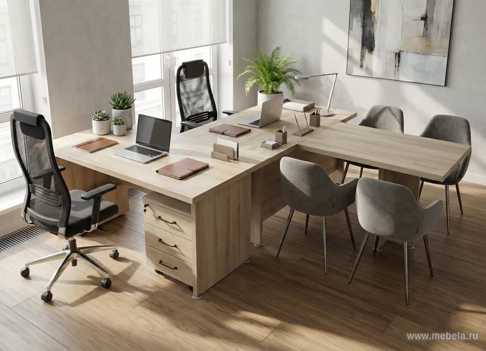 Обставить кабинет руководителя недорого и солидно стало возможным благодаря комплекту офисной мебели “Приоритет“. Массивные столешницы и декоративные панели достоверно имитируют настоящее дерево, являясь при этом ламинированным ДСП. Благородно выглядящий цвет панелей мебели придает комплекту еще больше статуса.