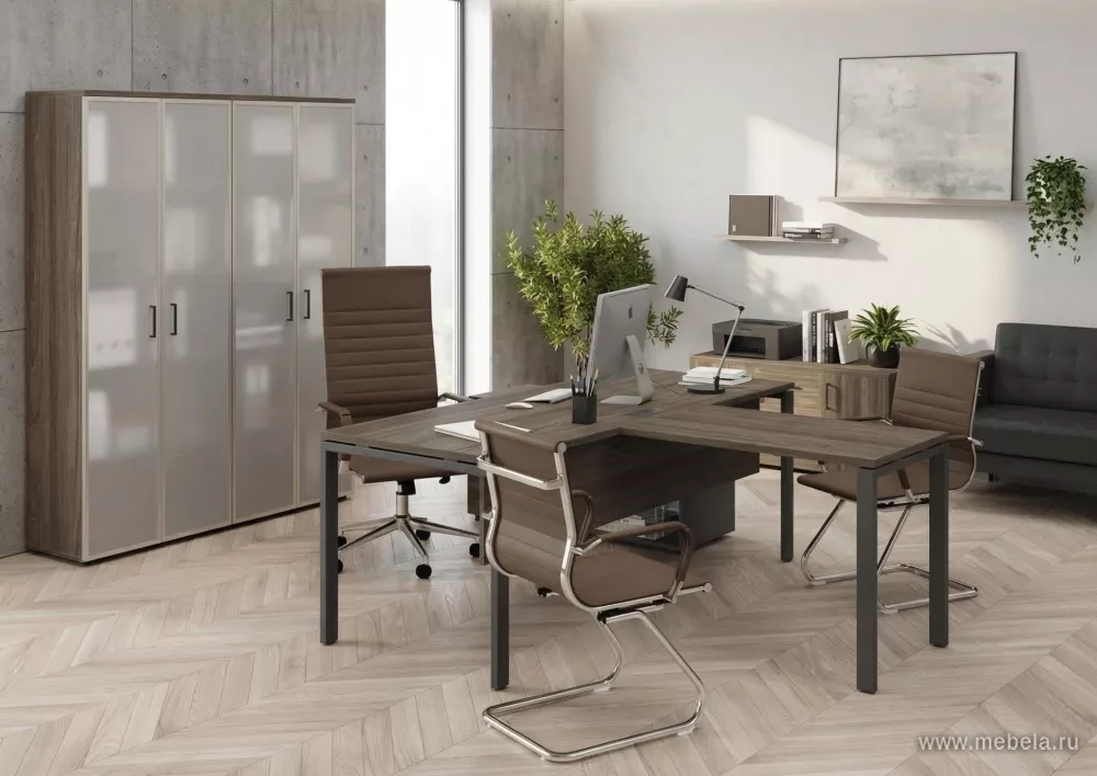 Кабинет руководителя Стайл Проджект Вяз — современное решение российского производства. Прочный металлокаркас прямой и обратной трапеции, ЛДСП в цвете вяз благородный, элегантные опоры и широкий выбор оттенков создают стильный и надежный офис для деловых лидеров.