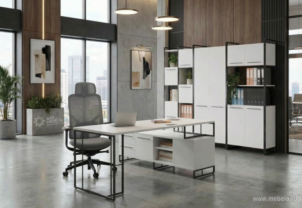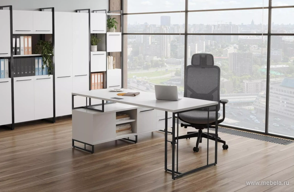 Мебель для кабинета руководителя Rift (Рифт) - стильное решение для вашего офиса. Изготовлена в России из качественного ЛДСП толщиной 25/18 мм. Доступны цвета: Белый Бриллиант, Антрацит и другие. Металлические опоры с сечением 20*20 мм обеспечивают прочность, а регулируемые опоры М6 - комфорт.