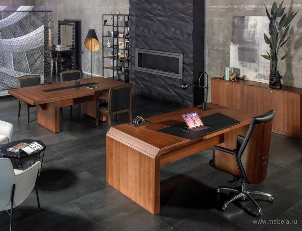 Кабинет руководителя "Ривьера" из дорогого МДФ и массива дерева в цвете итальянский орех и дуб ферро представляет собой роскошное и стильное рабочее пространство для руководителей высшего звена. Такой кабинет подчеркнет статус и престиж компании, а также обеспечит комфортные условия для работы и проведения деловых встреч.