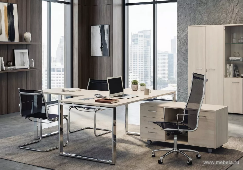 П-образные хромированные опоры столов кабинетов руководителей Ротонда (Rotonda) делают мебель из этой коллекции практически невесомой. Отсутствие массивных панелей и светлая форма столешниц помогает зрительно расширить пространство даже в самом тесном офисе. Отражение от хромированных ножек дела...