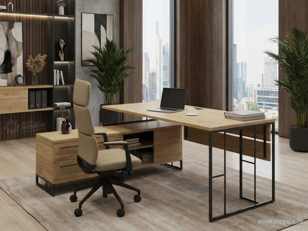 Мебель для кабинета руководителя Rift (Рифт) — это идеальное сочетание стиля, комфорта и функциональности. Производство в России гарантирует высокое качество и долговечность каждой детали. Столешницы из ЛДСП толщиной 25/18 мм доступны в различных элегантных цветах: Тиквуд Светлый, Сандал Янтарны...