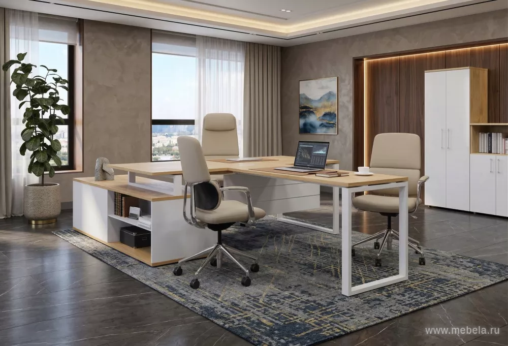Модульный модельный ряд позволяет почувствовать себя в кабинете максимально комфортно, а вся необходимая документация всегда будет под рукой, благодаря оригинальной опоре столешницы: брифинг-тумбе с открытой и закрытой системой хранения. Вторая опора простая легкая прямоугольная рамка из нержаве...