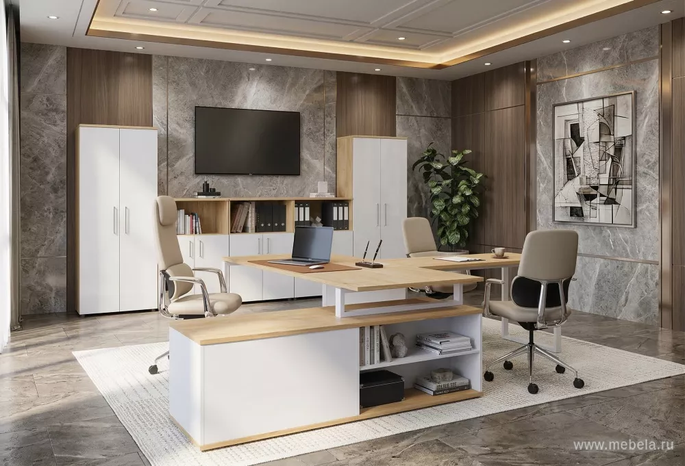 Наполненный светом, теплом привлекательной структуры тикового дерева, оттененный строгостью металлических элементов, кабинет руководителя Шифт притягивает взгляд и поражает продуманной эргономичностью. Качественные материалы, функциональные модули в стиле хай-тек создают современное рабочее пространство.
