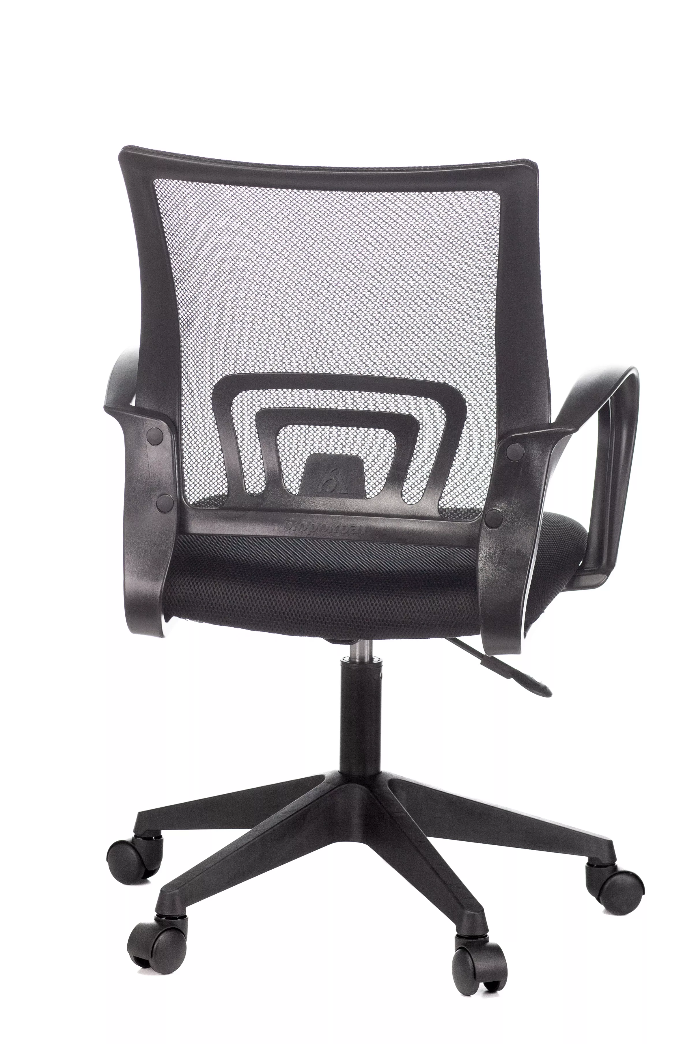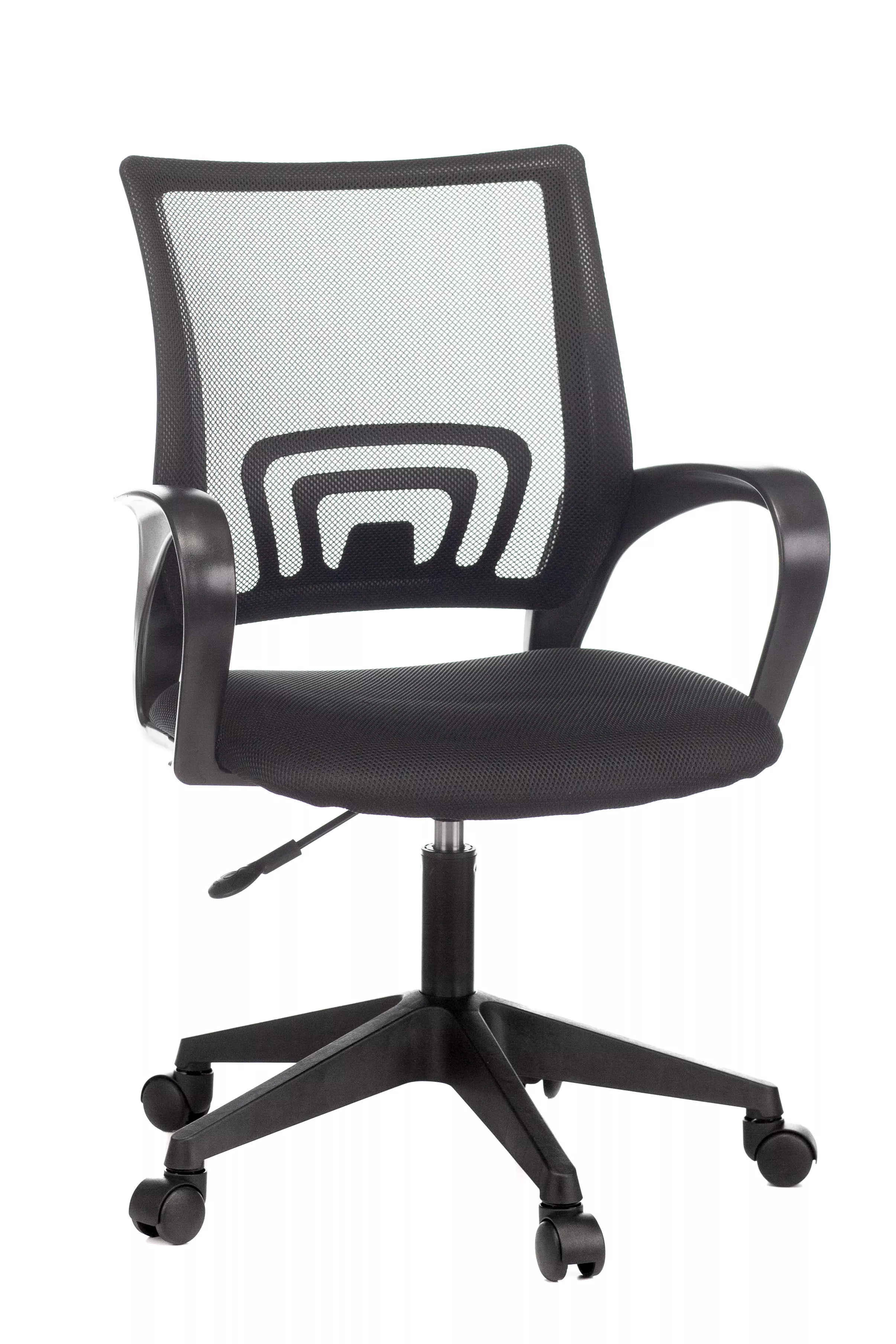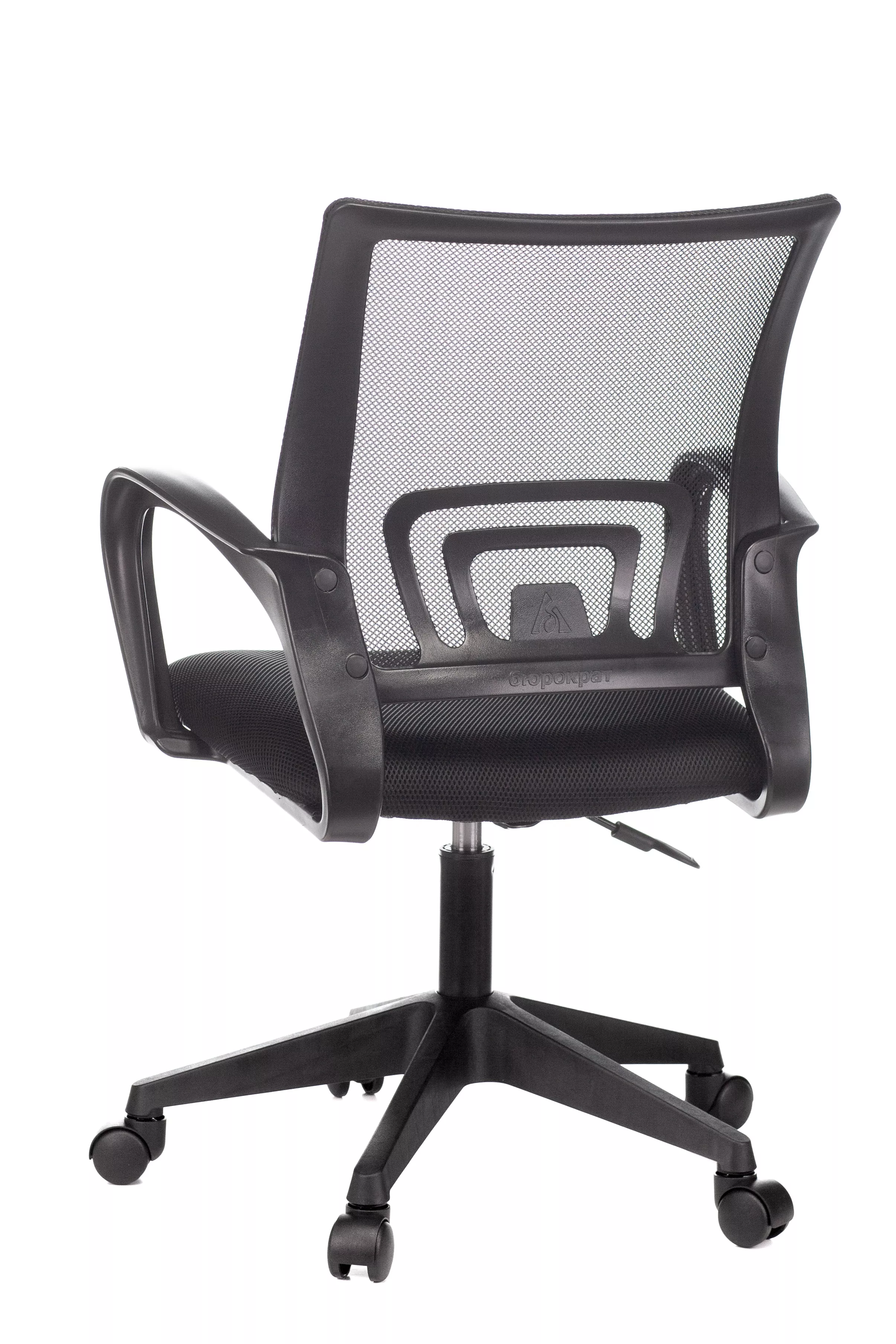 Ткань черного цвета, которой обтянуто сидение кресла, отличается своей прочностью и износостойкостью.Пятилучевая крестовина изготовлена из прочного пластика. В сочетании с поворотными колесиками, она позволяет креслу легко и бесшумно передвигаться по любому напольному покрытию. Ограничения - вес...