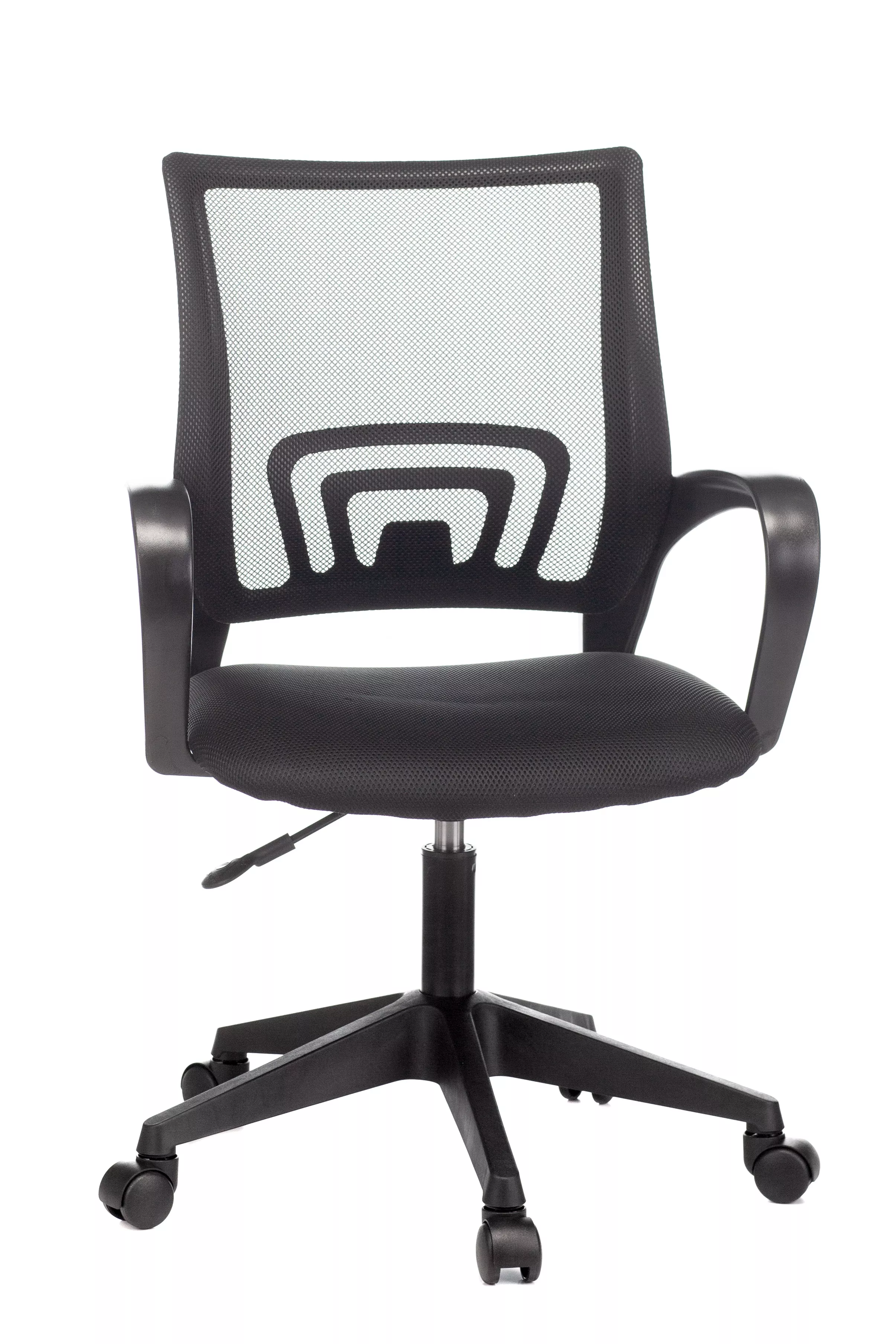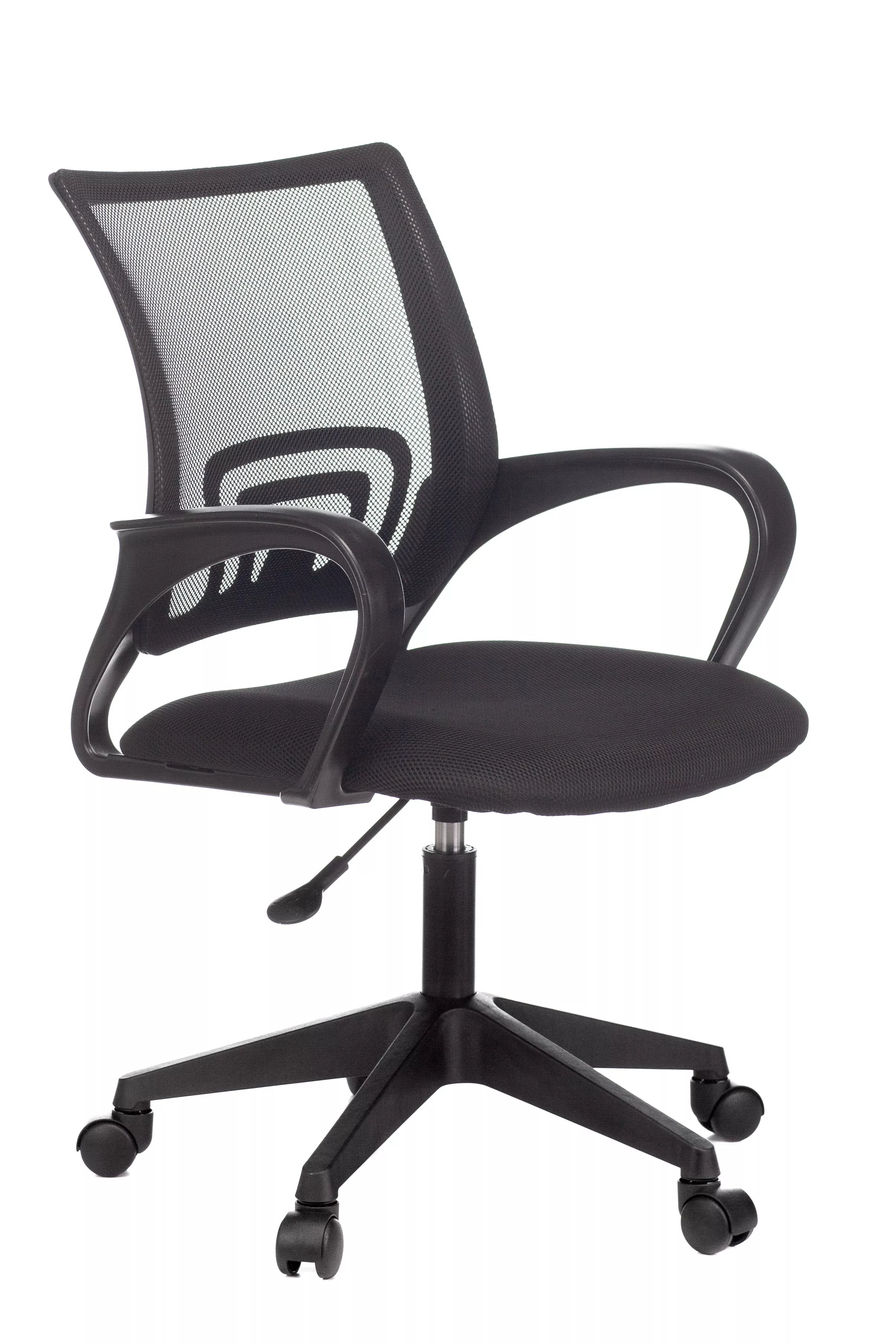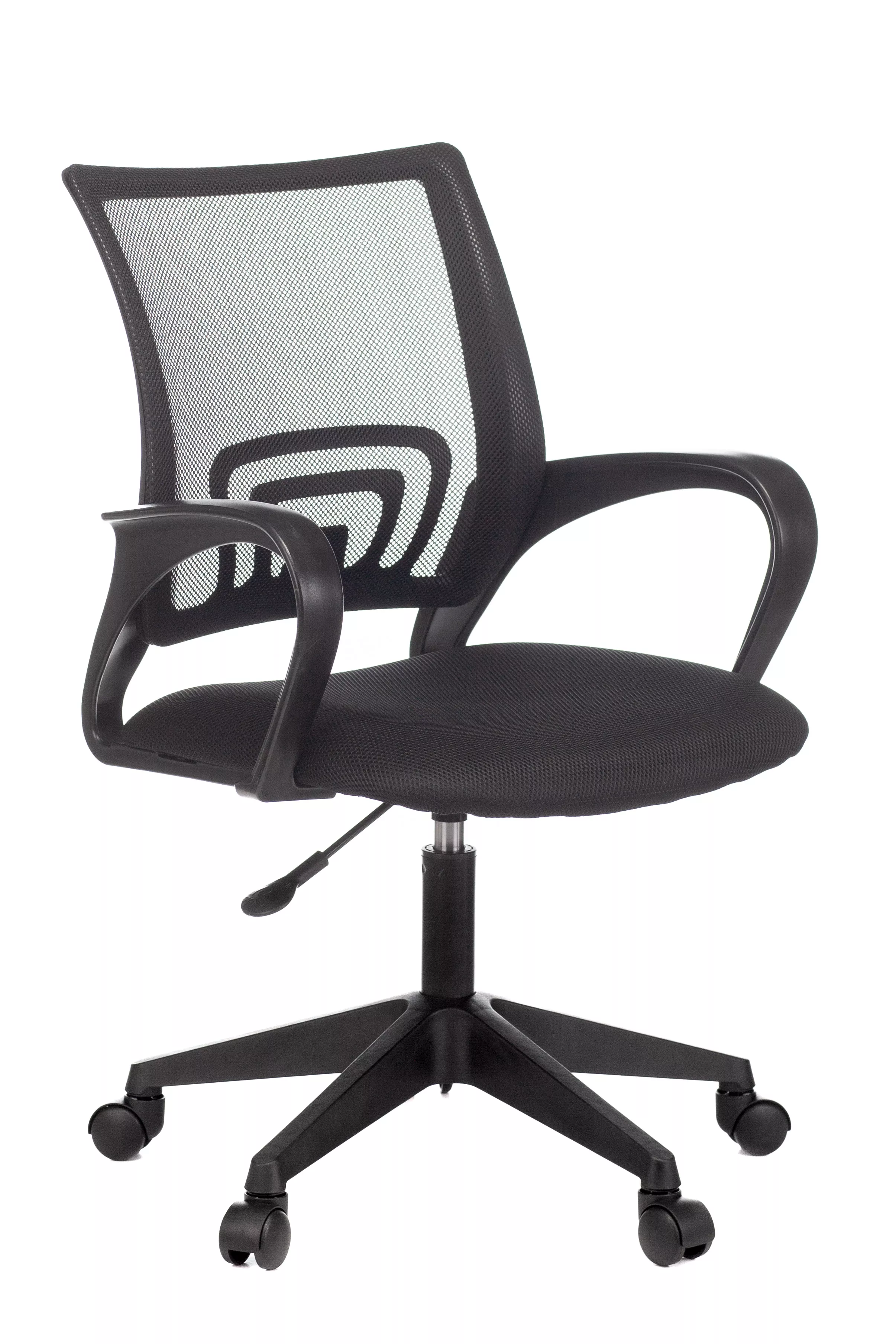 Ткань черного цвета, которой обтянуто сидение кресла, отличается своей прочностью и износостойкостью.Пятилучевая крестовина изготовлена из прочного пластика. В сочетании с поворотными колесиками, она позволяет креслу легко и бесшумно передвигаться по любому напольному покрытию. Ограничения - вес...