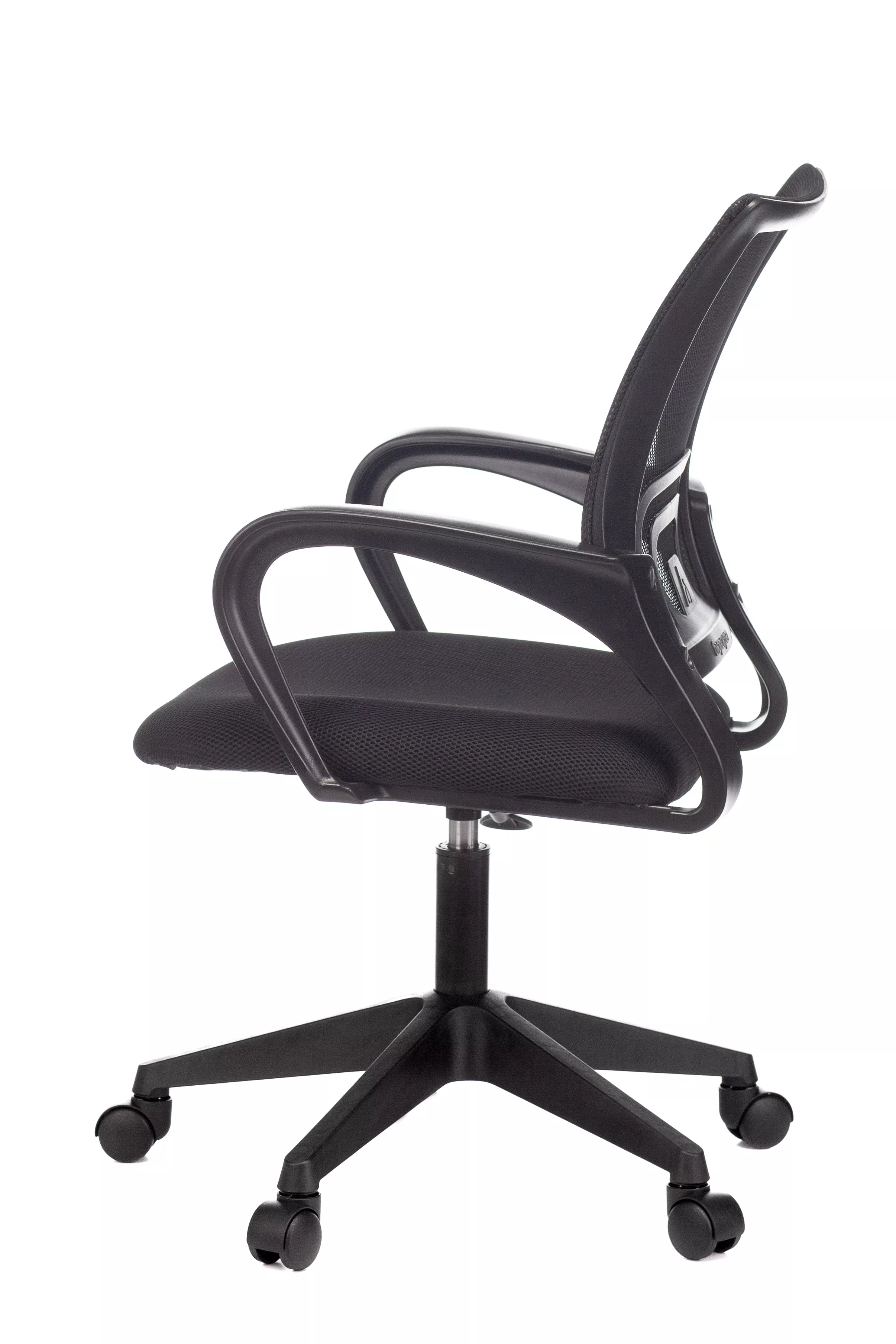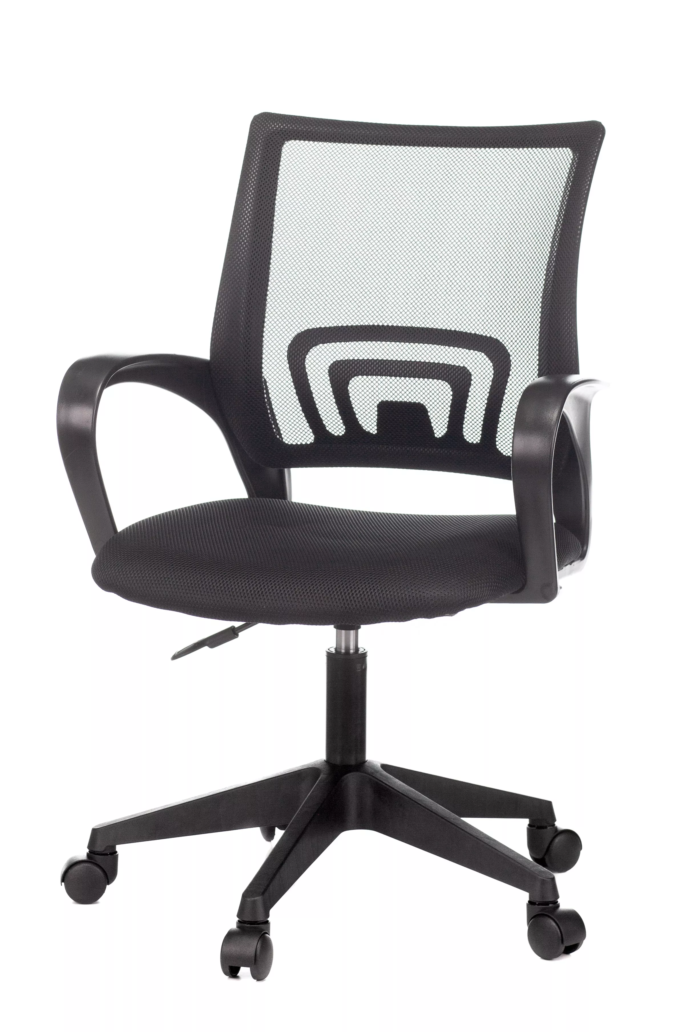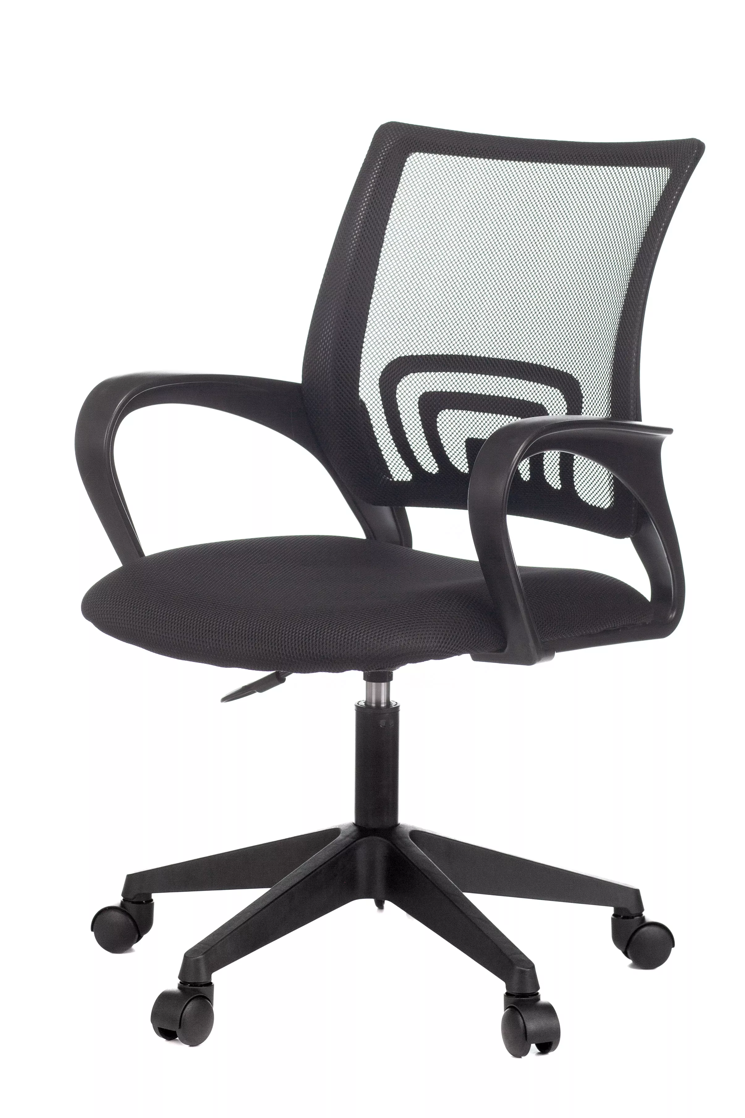 Ткань черного цвета, которой обтянуто сидение кресла, отличается своей прочностью и износостойкостью.Пятилучевая крестовина изготовлена из прочного пластика. В сочетании с поворотными колесиками, она позволяет креслу легко и бесшумно передвигаться по любому напольному покрытию. Ограничения - вес более 120 кг.