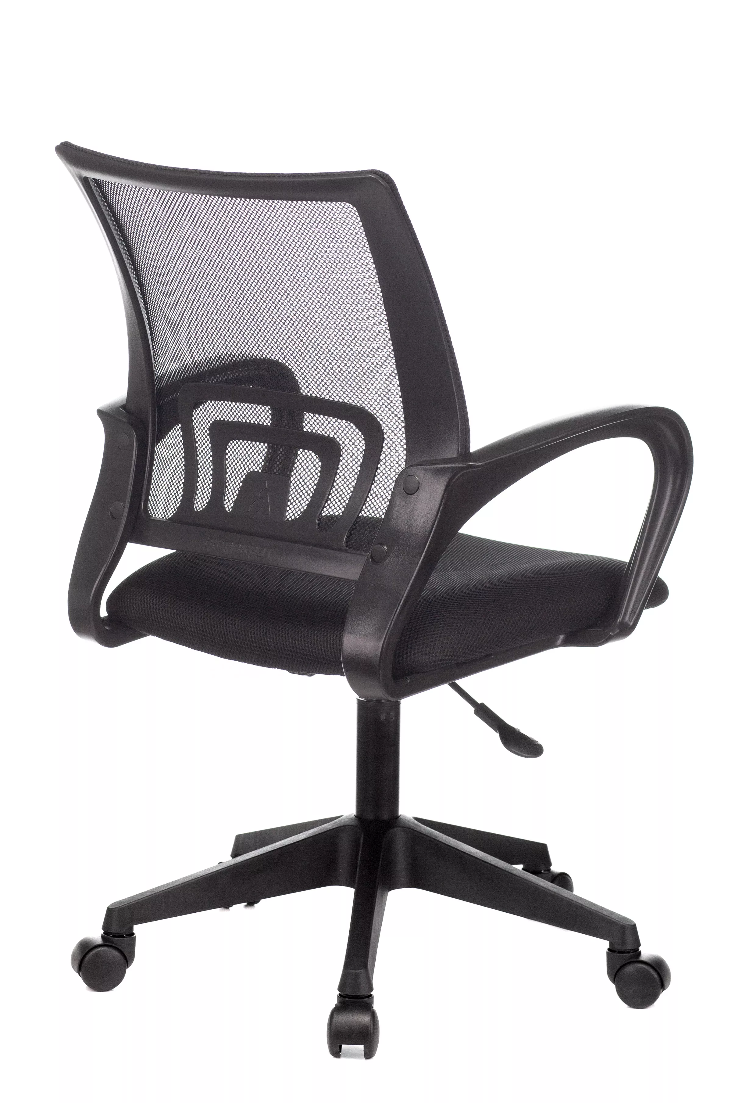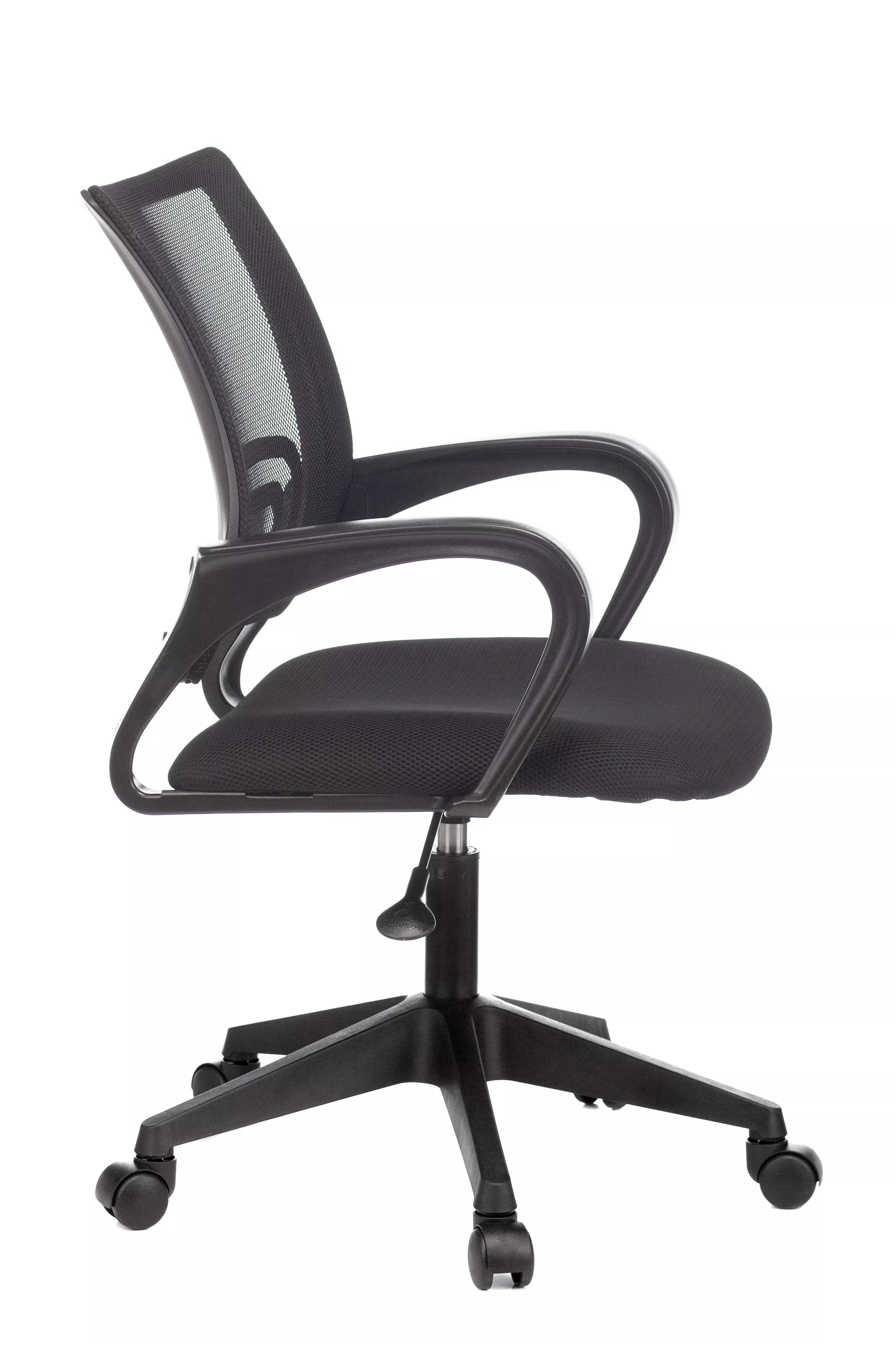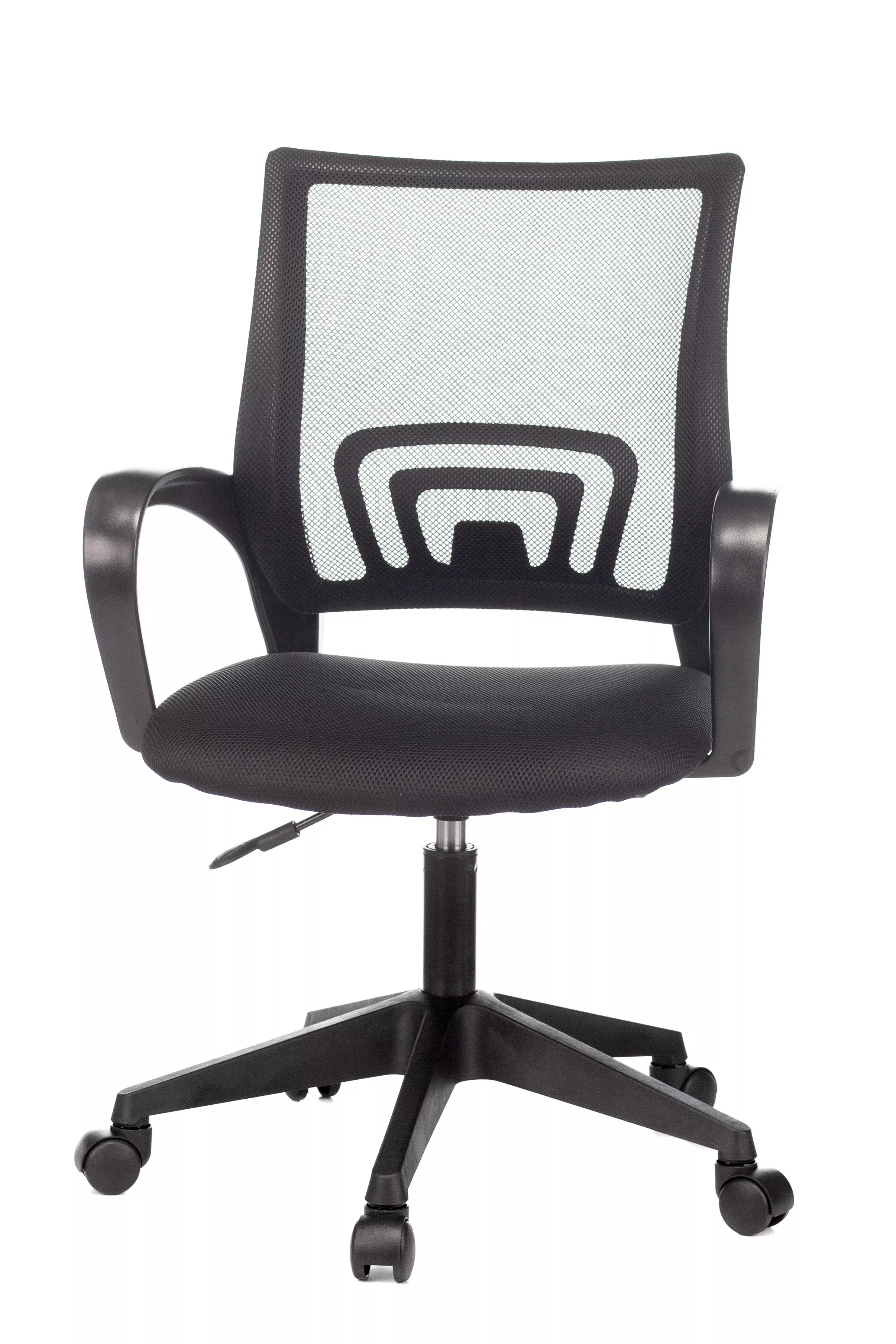 Ткань черного цвета, которой обтянуто сидение кресла, отличается своей прочностью и износостойкостью.Пятилучевая крестовина изготовлена из прочного пластика. В сочетании с поворотными колесиками, она позволяет креслу легко и бесшумно передвигаться по любому напольному покрытию. Ограничения - вес более 120 кг.