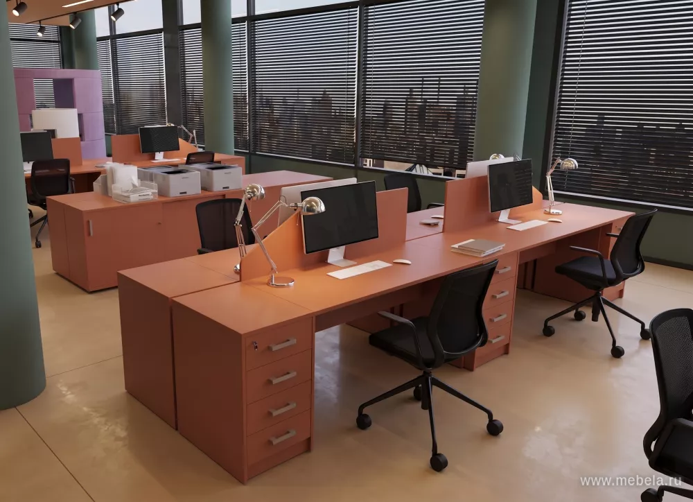 Мебель Арго (Argo) в цвете терракота освежит любой офис и сделает рутинный рабочий процесс гораздо интереснее. Комбинированные цветовые решения (цветные вставки на ящиках столов и т.д.) и эргономичный дизайн создадут не только уникальную атмосферу, но и повысят эффективность работы.