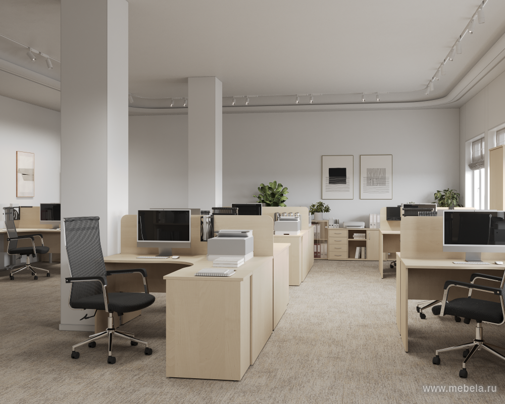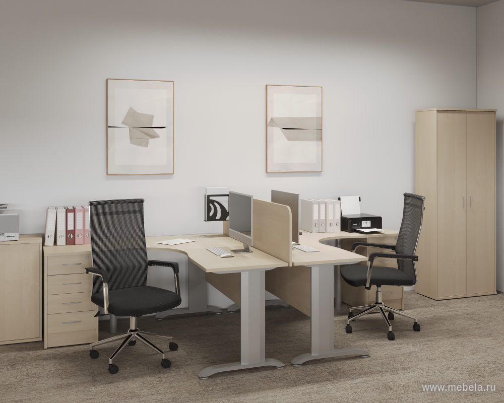 Мебель для офиса Riva Клён создаст на рабочем месте энергичную и творческую атмосферу. Все благодаря свежим дизайн-решениям и необычным цветовым схемам. Комбинированное использование цвета светлого клена и металлического вида ДСП оживит любой офис. В гарнитуре есть все для обустройства рабочего места....