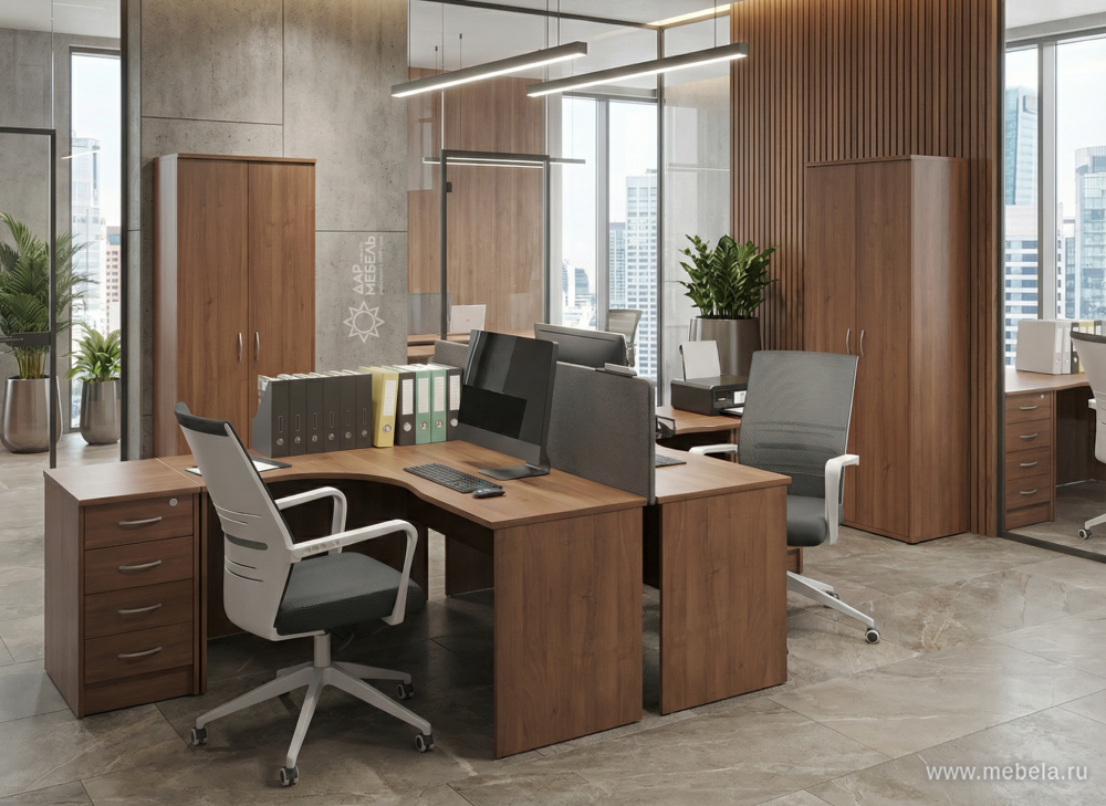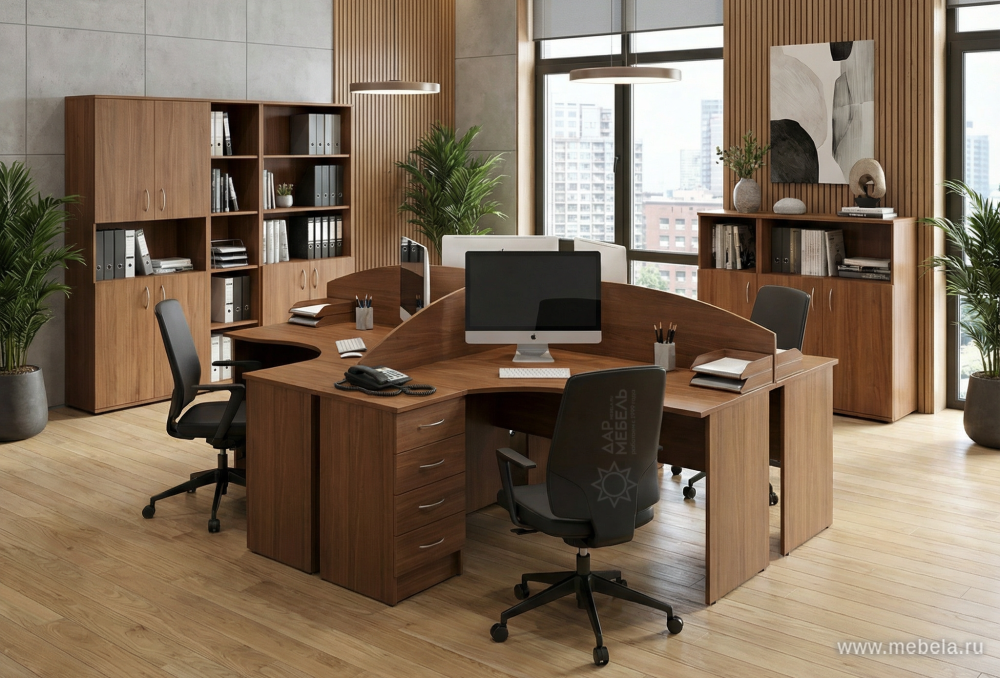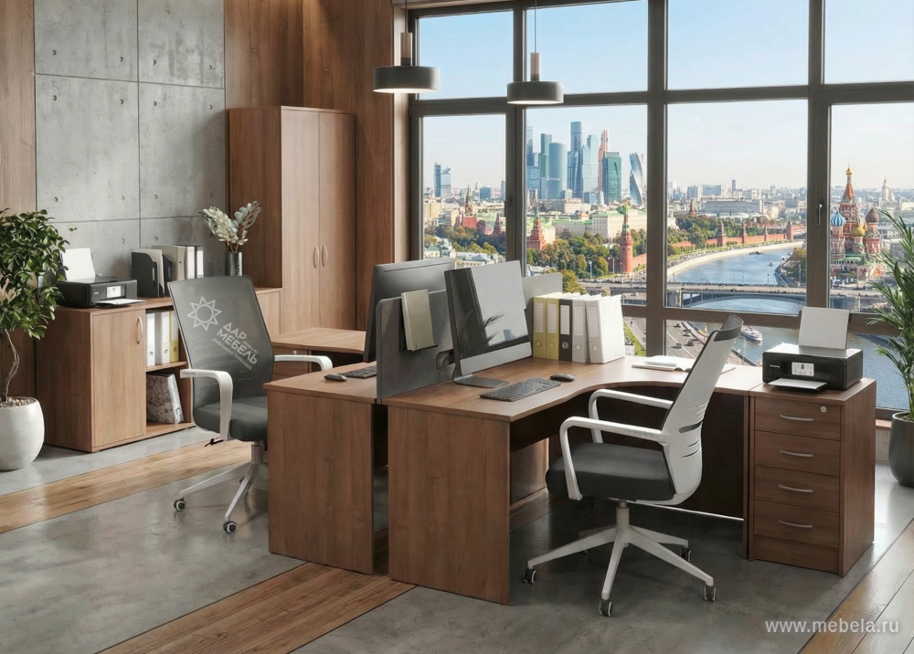 Создать представительную атмосферу в офисе с мебелью Riva можно, даже если вы располагаете скромным бюджетом. Классический дизайн и солидные цветовые схемы оформят любое помещение в строгих тонах. Модельный ряд гарнитура мебели Рива позволит обустроить рабочие места любой сложности и конфигурации.