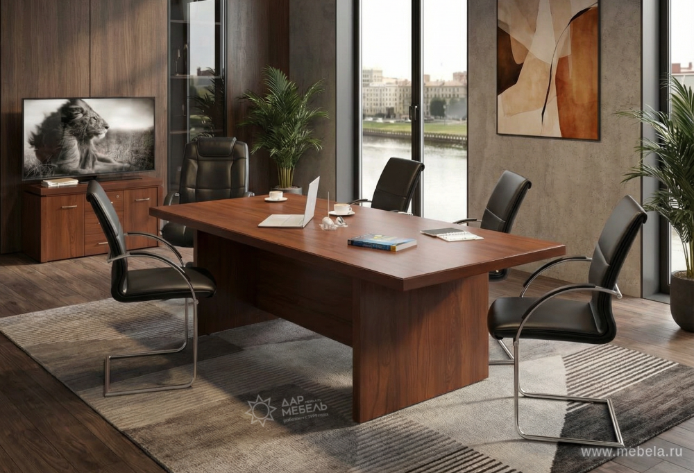 Столы для переговоров Милан - прекрасный пример того, как в недорогой офисной мебели могут сочетаться презентабельность, комфорт и надежность. Мебель данной серии имеет классический, лаконичный дизайн, что, наверняка, понравится сторонниками минимализма. Столы изготавливаются в двух цветах: "венге" и "орех табак".