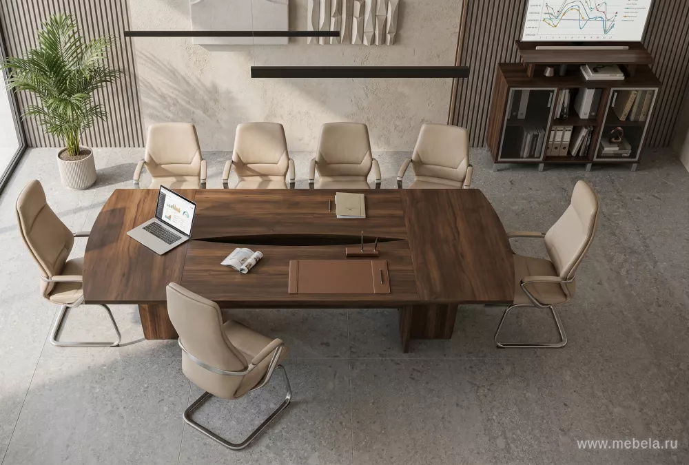 Построить кабинет для ведения напряженных деловых контактов перестало быть проблемой благодаря столам для переговоров “Борн”. Любая конфигурация кабинета стала возможной, а число участников диалога не имеет значения. В комплекте этой офисной мебели есть элементы для построения любой конструкции.